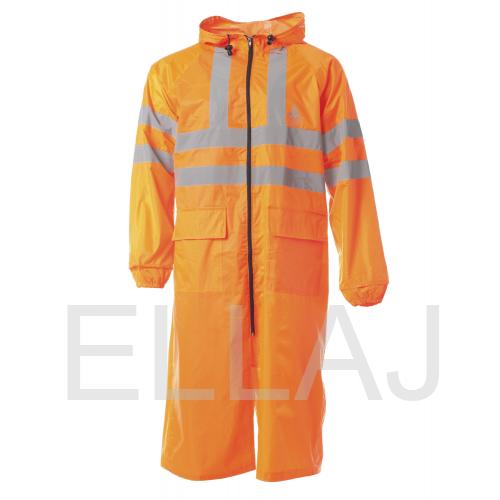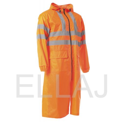 Плащ «ТАЙФУН с СОП» изготовлен в соответствии с ГОСТ и включает в себя два предмета: куртка / брюки. Он обеспечивает максимальную защиту от дождя, ветра, снега и загрязнений во время работы или активного отдыха, а также обеспечивает максимальную безопасность в условиях плохой видимости. Куртка прямого силуэта оснащена притачным капюшоном и отложным воротником. Пояс на резинке обеспечивает комфортную посадку. Центральная застежка на молнию скрыта за ветрозащитной планкой на кнопках. На куртке расположены два нижних кармана с влагозащитными клапанами для удобного хранения вещей. На капюшоне шнур с фиксаторами для более плотного прилегания. Рукава реглан с внутренними манжетами на резинке обеспечивают защиту от холода. Брюки прямого силуэта с эластичной тесьмой в притачном поясе и регулировкой по поясу шнуром с фиксаторами. Все швы на куртке и брюках проклеены специальной лентой, обеспечивающей 100% герметичность швов и защиту от «протечек». Для безопасной работы сотрудника в местах с плохим освещением на костюме «ТАЙФУН» с СОП предусмотрена световозвращающая полоса шириной 50 мм. Предполагаемая сфера применения: дорожные и коммунальные службы, городское хозяйство, транспорт, работа на открытом воздухе в условиях плохой видимости.