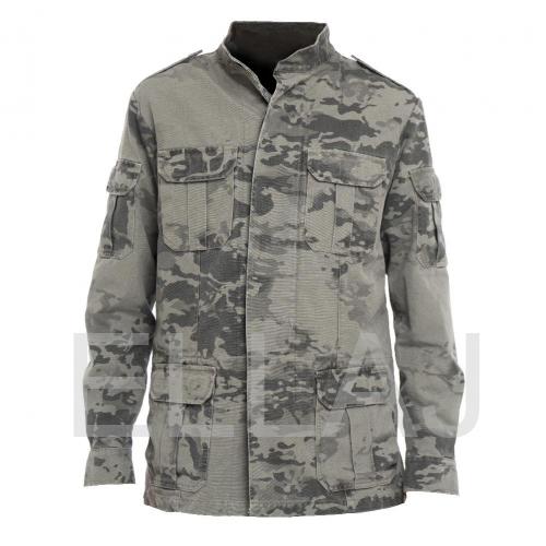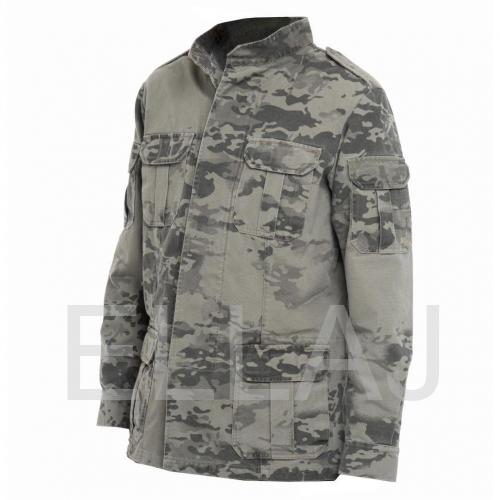 Куртка мужская из хлопка "YUMCO", модель A2200414M выполнена на пуговицах, закрытых ветрозащитной планкой. Изделие оснащено 12 карманами. Внешние: 2 на рукавах, 2 на груди, 2/2 на талии (накладной + прорезной). Внутренние: 2 нагрудных на молнии и 2 на поясе на липучках. На модели расположен воротник-стойка.