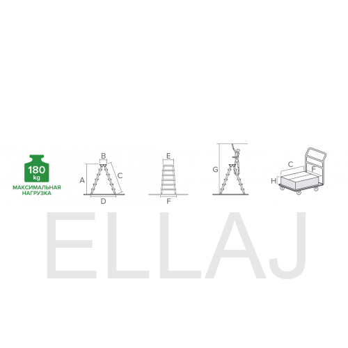 • Алюминиевая складная площадка 350×260 мм из 2 ступеней. Увеличенный радиус работы.