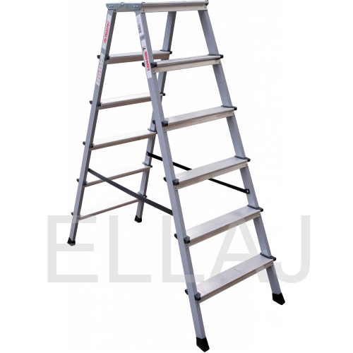 Стремянка двухсторонняя стальная с алюминиевыми ступенями и площадкой 350×260 мм NV2140206