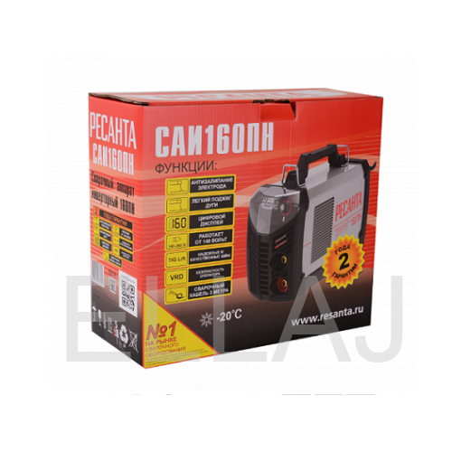 Ресанта САИ 160ПН – инверторный прибор, адаптированный для работы от однофазной сети питания с пониженным напряжением (колебания в пределах от 140 до 240 В). Это способствует эффективной функциональности и что наиболее важно – высокому качеству сварного шва.