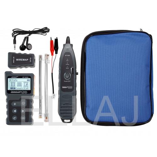 NF-8209 - это новое поколение тестеров имеющих цифровую и аналоговую трассировку кабельных линий. Он имеет три режима отслеживания кабеля, цифровой режим, аналоговый режим и режим PoE. Кроме того, он включает в себя измеритель длины кабеля, тестирование неисправностей LAN сетей, тестирование PoE, визуальный легкий поиск нужного кабеля на коммутаторе (Flash Port) и функцию NCV (бесконтактный датчик напряжения 220В).