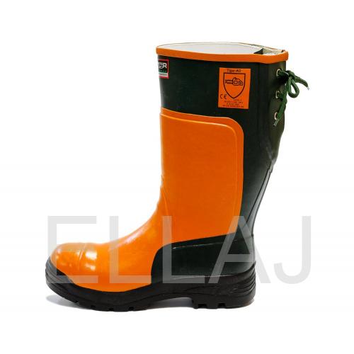 CENTURY® Forester 3000 Tigar обладают высокими защитными свойствами. Сапоги водонепроницаемые, масло-бензостойкие, устойчивые к многократным изгибам Изделие защищает от ударов в носочной части. Подошва предотвращает скольжение ноги. Удобная колодка обеспечивает комфорт в носке. Высота сапог составляет 40 см. Шнуровка сзади сверху необходима для регулировки голенища. Могут использоваться в среде с риском прокола подошвы, на скользких участках, в условиях повышенной влажности, при работе с маслами и смазками, в условиях общепроизводственных загрязнений. Средство индивидуальной защиты может использоваться при риске получения травм ног вследствие удара, ущемления или укола, разрезания сапога цепью моторной пилы при рубке леса или при выполнении работ в деревоперерабатывающей промышленности.