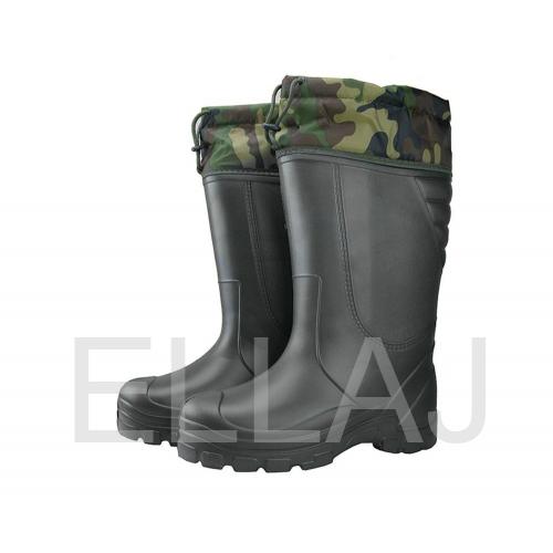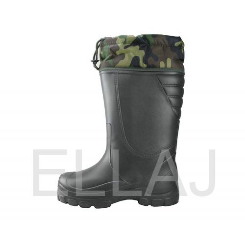 В сапогах ЭВА "АРКТИКА" расположен клапан-манжет, выполненный из водоотталкивающей ткани (Оксфорд) с возможностью регулировки по ноге. Внутри сапог 5-слойный сменный вкладыш (чулок), льняное полотно, ППУ (пенополиуретан), полушерстяной мех. Фольгированная сетка сохраняет тепло. Сапоги ЭВА «АРКТИКА» рассчитаны на эксплуатацию при экстремально низких температурах (до -70С).