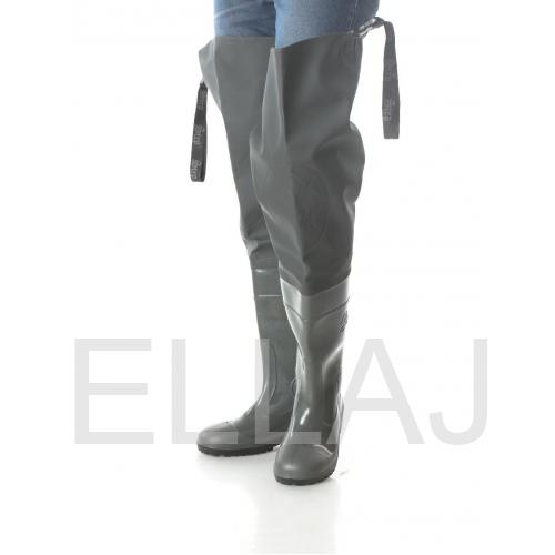 Сапоги ПВХ рыбацкие регулируются по длине на бретелях. Верхняя часть герметично соединена с сапогами. Модель изготавливается на базе рабочих сапог. Изделие полностью водонепроницаемо. Наколенники выполнены из винтитола и поролона. На заказ сапоги могут быть изготовлены с металлическим защитным носком (Мун 200) и проколозащитной металлической стелькой (1200 Н).