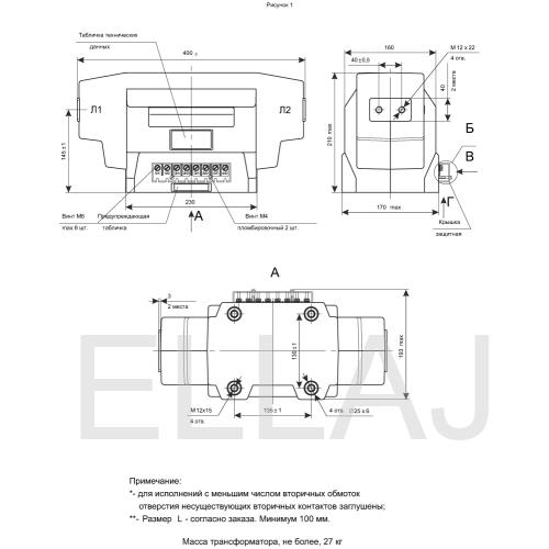 | Класс точности обмоток для измерения 0,2S; 0,2; 0,5S обмоток для защиты | 5Р; 10Р |