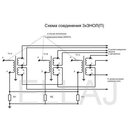 Трансформатор напряжения 3*ЗНОЛП-НТЗ-6 в составе трансформаторов имеют встроенное предохранительное устройство с номинальным током плавкой вставки 630 мА. (плавкая вставка SIBA №187000)