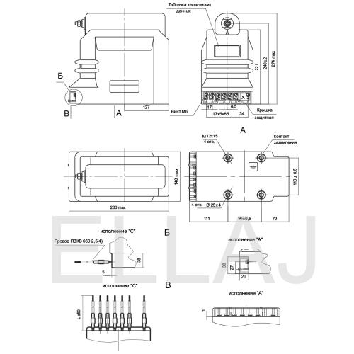 | Предельная мощность трансформатора вне класса точности | 400 или 630 ВА |