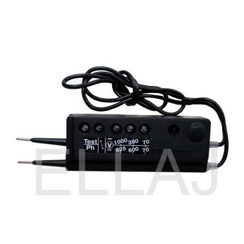 Для ступенчатого контроля напряж. 70, 600, 825 В постоян. и 70, 380, 1000 В перемен. тока. Определяет фазу перемен. и полярность постоян. тока, целостность эл. цепей от 0 до 1 мОм. Индикация светозвуковая.