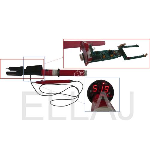 Указатель величины тока и напряжения УТН-1000 предназначен для определения величины постоянного и переменного тока от 0 до 1000 А промышленной частоты напряжением до 10 кВ без разрыва токовой цепи, а также величины напряжения постоянного и переменного тока от 0 до 1000 В, как в воздушных линиях, так и в распределительных устройствах. Индикация измеряемой величины и режима работы (переменное, постоянное, ток или напряжение) осуществляется посредством цифрового табло. Для определения величины постоянного и переменного тока воздушных линиях и распредустройствах 0.4-10 кВ, указатель комплектован изолирующей штангой с рукояткой, L=0.52м, а в комплекте с изолирующей многофункциональной 4-х звенной сборной штангой ШО-10-4-6,6 длиной 6,6 м, поставляемой по заказу потребителя за отдельную плату, указатель позволяет определить величину тока на линиях электропередач 0.4-10 кВ, без подъема на опору ВЛ, непосредственно с поверхности земли. Переключние режимов пост/перем. осуществляется автоматически. Принцип работы указателя основан на определении величины напряженности электромагнитного поля, создаваемого вокруг проводника посредством совокупности специализированных температурно-компенсированных датчиков, распределительных вокруг токоведущего проводника по осям вилки указателя, что позволяет определение величины тока независимо от оси и угла расположения проводника в пространстве вилки указателя.
