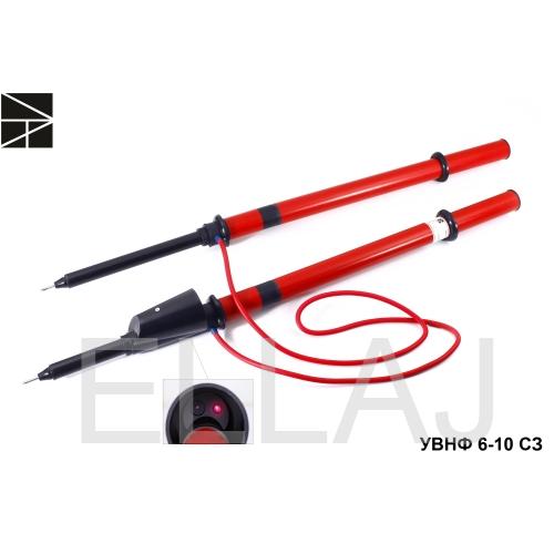 Указатель высокого напряжения для проверки совпадения фаз УВНФ 6-10 СЗ предназначен для проверки совпадения фаз кабельных и воздушных линий, а также как двухполюсный указатель для определения наличия или отсутствия напряжения, особенно в условиях наведенного напряжения, на воздушных линиях и электро-установках переменного тока напряжением 6-10кВ частотой 50 Гц.