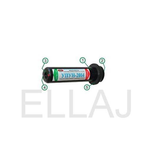 Внешний вид УПУН представлен на рис. 1. В пылезащищенном противоударном стеклопластиковом цилиндрическом корпусе 1 размещены генератор высоковольтных импульсов и источник питания с временем хранения не менее 8 лет. Торцы корпуса 1 снабжены контактным электродом 2, кнопкой включения 3 и светодиодным индикатором 4, который обеспечивает как индикацию включенного состояния, так и функции фонаря.