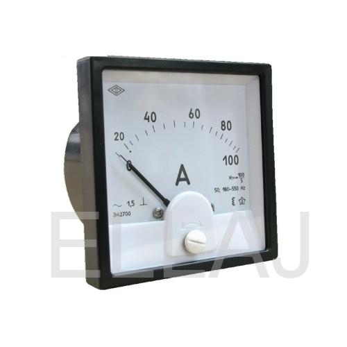 Амперметр Э42700 - прибор электромагнитной системы, предназначен для измерения тока в цепях переменного тока. Амперметры электромагнитной системы более устойчивы к перегрузкам и это позволяет создавать приборы с коэффициентом перегрузки от 2-х до 5-ти кратного диапазона измерения. Диапазоны измерений от 100 мА до 100 А при прямом включении. Для расширения диапазонов измерения применяются трансформаторы тока типа ТОП-0,66 (заказываются отдельно). Амперметры Э42700 изготавливаются с нулевой отметкой на краю диапазона и могут быть изготовлены со шкалами в любых единицах измерения по желанию заказчика.