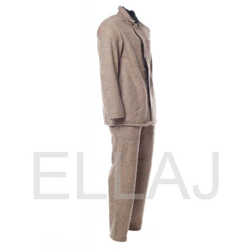 Костюм КЩС суконный изготовлен в соответствии с ГОСТ и включает 2 предмета: куртка, брюки. Изделие закрывается на супатную застежку на пуговицы. На модели расположены верхний левый накладной карман, нижние карманы в рельефе, накладные карманы с косым входом. Куртка оснащена втачным воротником. Гульфик на брюках застегивается на пуговицы. На задних половинках брюк присутствует вытачки. Пояс изделия-цельнокройный, держится на шлевках.