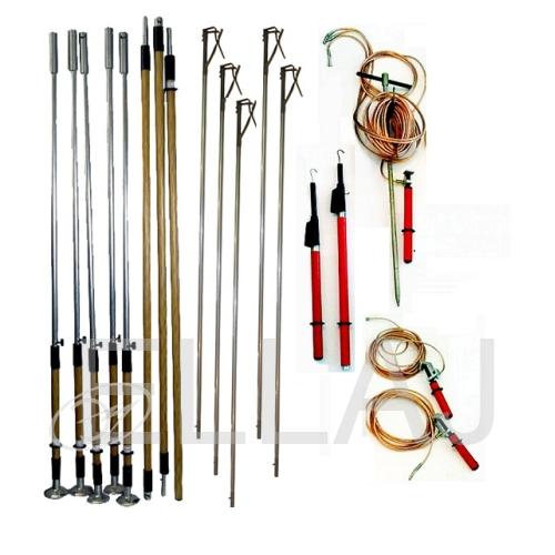Комплект штанг универсальных для заземления ВЛ 0,4-10 кВ КШЗУ-0,4-10Н предназначен для заземления проводов отключенных ВЛ напряжением 0,4-10 кВ непосредственно с поверхности земли, а с указателями напряжения для проверки наличия или отсутсвия напряжения на воздушных линиях, при температуре от -45°С до +40°С. Относительная влажность воздуха не выше 80% при 25°С.