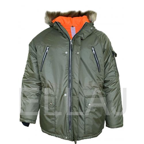 Куртка "Аляска" изготовлена в соответствии с ГОСТ. Модель имеет удлиненный фасон на поясе, дополнена эластичной резинкой для комфортной посадки. Ветрозащитная планка на кнопках обеспечивает дополнительную защиту от ветра. Капюшон пришит к куртке и оснащен съемной меховой опушкой, что позволяет варьировать его использование в зависимости от погодных условий и предпочтений.
