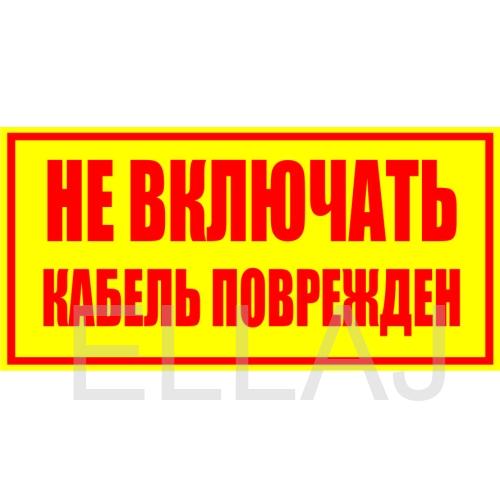 Знак (плакат) «Не включать! Кабель поврежден», S52 на пластике, размером 250х140 мм предупреждает о том, что включать установку или электроприбор не безопасно, так как имеются повреждения. Знаки и плакаты по электробезопасности изготовлены согласно требованиям Министерства энергетики России и являются предупреждающими знаками об опасности, связанной с электронапряжением