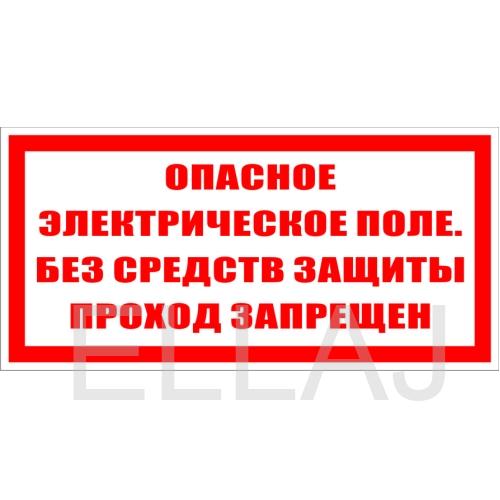 Плакат, знак безопасности "Опасное электрическое поле без средств защиты проход запрещен"