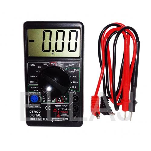 Цифровой мультиметр DT700D для измерения постоянного, переменного напряжения, постоянного тока, сопротивлений, проверки диодов и транзисторов.