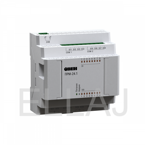 Подключение модулей осуществляется по внутренней шине. Кабель для подключения входит в комплект поставки ПРМ. К ПР можно подключить до двух модулей расширения ввода/вывода. Модули имеют свое независимое питание, что повышает надежность системы. Выпускаются две модификации по питанию: 230 В и 24 В, причем можно использовать ПР и модули ПРМ с разным типом питания.