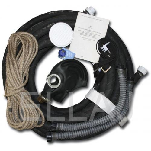 Состоит из комплекта лицевых частей, двух соединительных гофрированных трубок, шланга длиной 20 метров, фильтрующего элемента для очистки вдыхаемого воздуха от пыли и амуниции из хлопчатобумажного, лавсанового или пропиленового материала. Амуниция состоит из поясного ремня с плечевыми лямками и сигнально-спасательной веревки.
