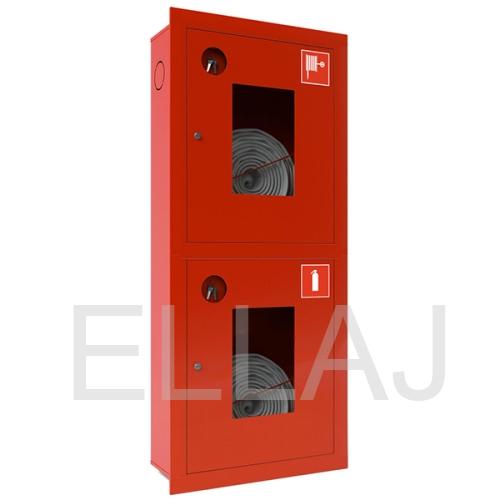 Предназначен для размещения двух комплектов пожарного крана (ПК), каждый из которых состоит из поворотной рукавной кассеты, пожарного рукава, ствола, клапана (вентиля) и соединительных головок. Модель имеет две секции вертикального позиционирования, по одному комплекту ПК в каждой. Изделие выполнено из тонколистовой стали и окрашено в красный цвет.